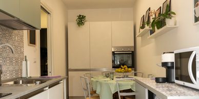 Our fully-renovated kitchen is wholly equipped with all items to satisfy every cuisine, including microwave oven, Nespresso coffee machine, toaster and kettle